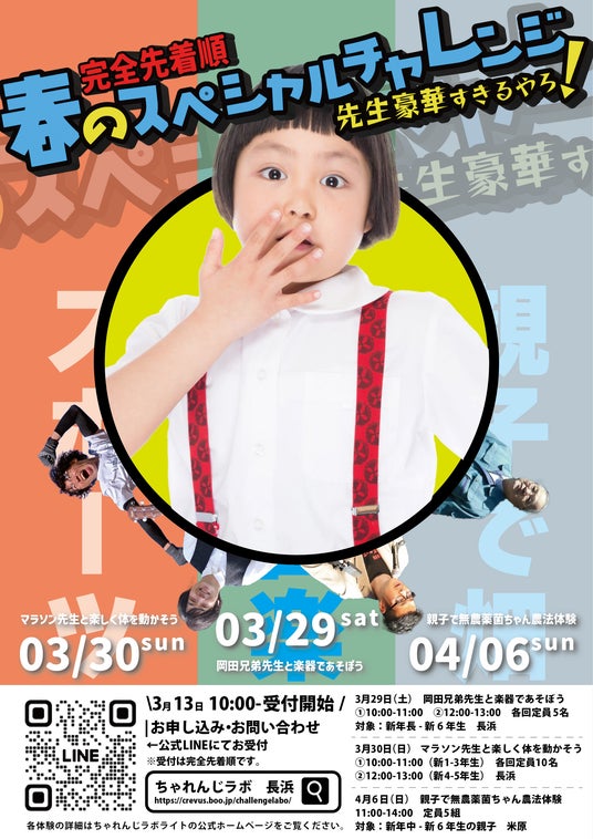 この春、音楽、スポーツ、農業の各分野のトッププロと一緒に学べる、他では体験できない特別な学びの場を提供いたします。地域で学び、成長できるチャンスをお子さまにぜひお届けください。