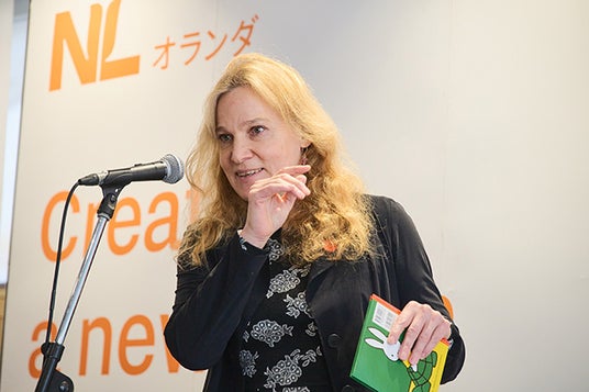 同日、ミッフィーのアンバサダー就任を記念した併催イベントとして「オランダについて学ぼう!~オランダ語と日本語による絵本の読み聞かせ~」を開催。60名以上の親子が参加し、「うさこちゃんのたんじょうび」(ディック・ブルーナ)の読み聞かせに耳を傾け、オランダ語の読み聞かせにも興味津々に目を向けた。