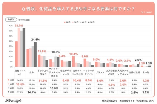 2,000人に聞いた!化粧品購入の決め手、第2位は「成分」で20.0%、第1位は?