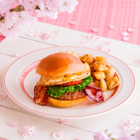 21日(金)~4月17日(木)の期間中『桜ブロッサムパンケーキ』と『桜スモークベーコンバーガー』を国内の Eggs ’n ThingsおよびEggs ’n Things Coffee全店舗で販売いたします。