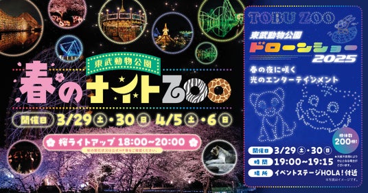 東武動物公園で体験する新しい夜の感動。3月29日(土)・30日(日)、『春のナイトZOO』期間限定の200機ドローンショーが特別開催されます。