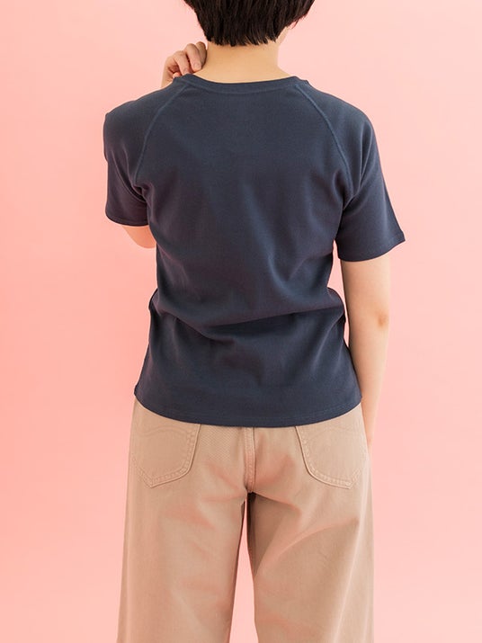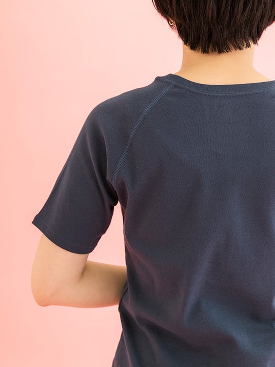 インラインの通常モデルからラグランスリーブに変更し、肩周りの可動域の広がりをもたせた快適な着心地を実現させました。