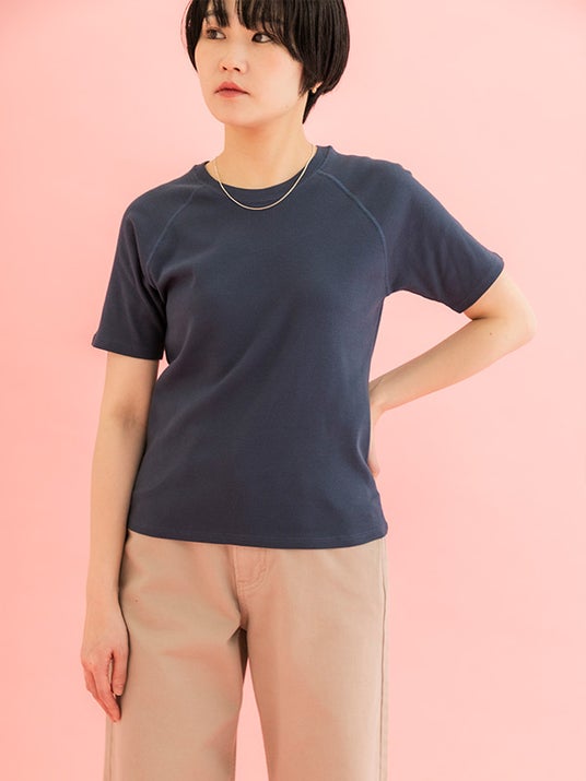 リブ編み仕様によりストレッチ性があり、身体への自然なフィット感を提供します。さらに、コットン100%の柔らかな素材を採用。シーズンを問わず快適に着用できるのも魅力のひとつです。