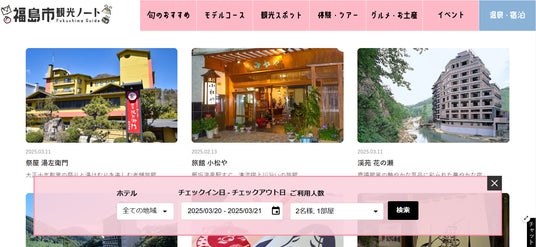 宿泊予約機能が搭載された福島市の観光Webメディア イメージ