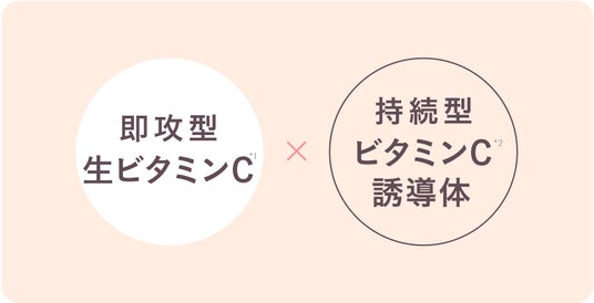 即攻型の生ビタミンC*1と持続型のビタミンC誘導体*2のWのビタミンC が、時間差でお肌全体に行き渡り、ワンランク上の肌質に仕上げます。