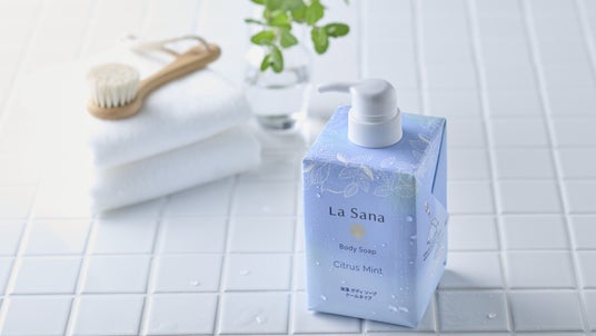 この取り組みの一環として、この度、「ラサーナ 海藻 ボディ ソープ クールタイプ」の容器をプラスチックボトルから、TOPPAN株式会社が開発した環境にやさしい紙製のボトル「キューブパック(TM)」へ変更いたしました。