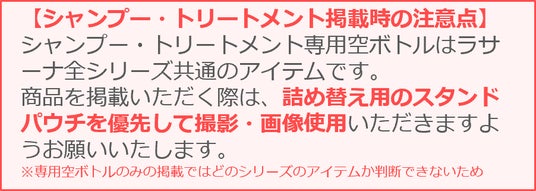 ※シャンプー、トリートメント詰め替え用は別途、ラサーナ全シリーズ共通の専用空ボトル(495円[税込])が必要となります。