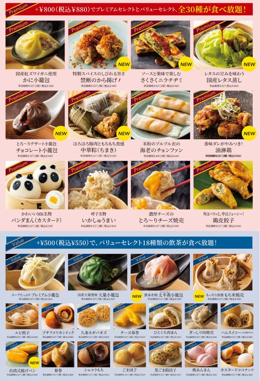 もご用意。また、人気 No1の「プレミアム小籠包」はお得な『バリューセレクト飲茶』コースでもご注文いただけます。