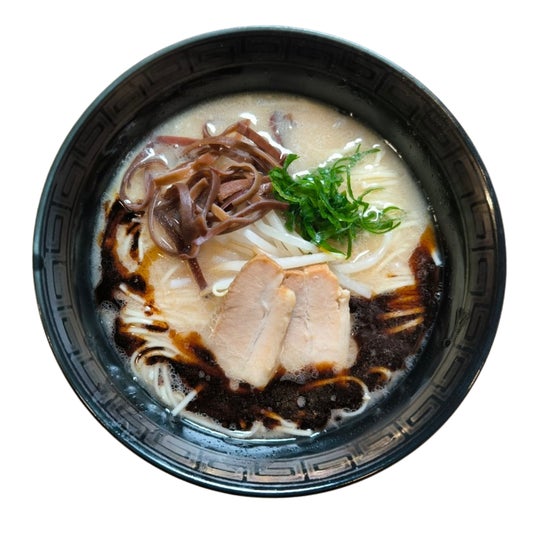 黒豚骨ラーメン 730円香ばしいマー油(ニンニク香味油)をたっぷりとかけた、濃厚で味わい深い熊本風の豚骨ラーメン。