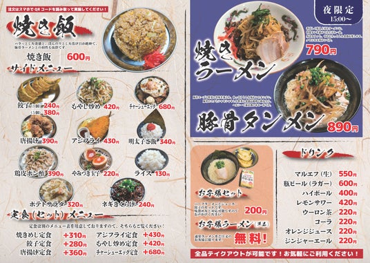 ※「お子様ラーメン」の無料提供は、未就学児(小学生未満)のお子様に限ります