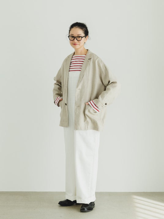 商品名:「ラフに、カーデ感覚」フレンチリネンのテーラードジャケット / かぐれ × KURASHI&Trips PUBLISHING