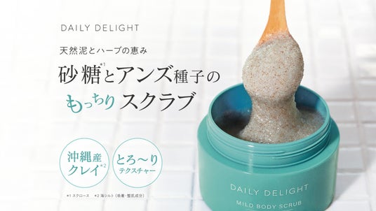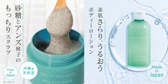 株式会社グローバルプロダクトプランニング(本社:東京都渋谷区南平台町)は、『デイリーディライト ビューティー』から、砂糖とアンズ種子のWスクラブと沖縄産天然クレイがもっちり素肌に整える「マイルドボディースクラブ」と、国産温泉水でさらりとうるおう「ジェリーボディーローション」を3月15日に発売します。
