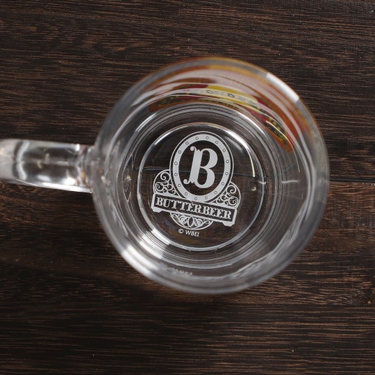 『ハリー・ポッター』シリーズに登場する、魔法界で大人気の飲み物「バタービール」のデザインのジョッキです。レトロなラベル風のバタービールのイラストが目を引きます。底面にはバタービールのロゴがプリントされており、飲み物を飲み干すと見えるロゴに遊び心を感じられます。