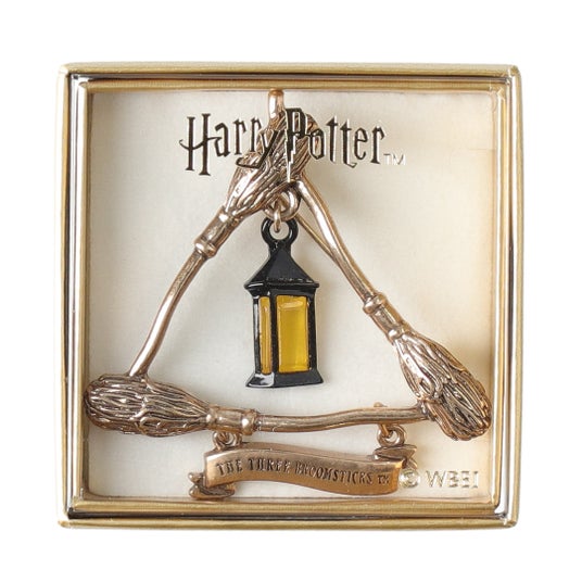映画『ハリー・ポッター』シリーズに登場する、ホグズミード村にあるパブ「三本の箒」の看板のデザインのピンバッジです。合金でできたランタンの中には明かりをイメージしたオレンジ色のストーンが埋め込まれています。ゴールドの高級感のあるパッケージに入っており、ギフトにもおすすめです。