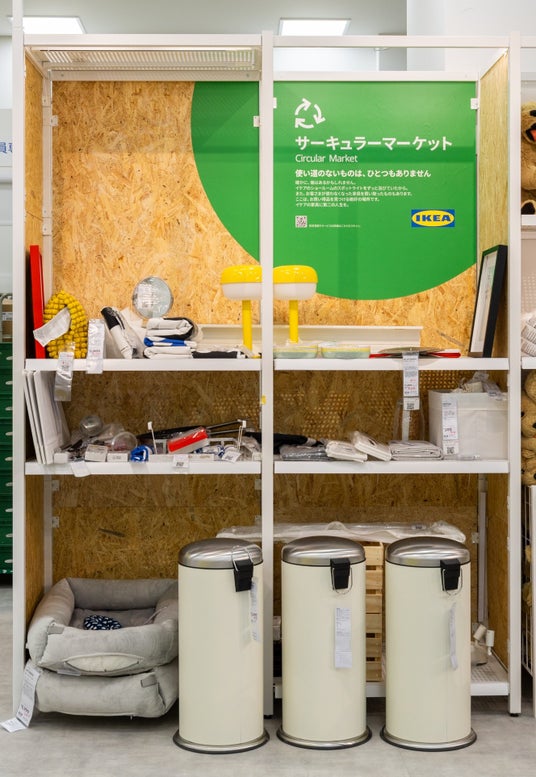 店舗ではお客さまとともにサーキュラービジネスを実現するために「サーキュラーマーケット」を設置しており、お客さまには展示品、販売終了商品、パッケージが破れた商品などをアウトレット価格で販売します。