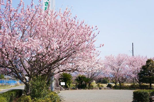一般的なソメイヨシノよりも2~3週間ほど開花が早く、関東では3月中旬ごろに満開を迎えます。3月中旬は卒業式のシーズンであり、地元では卒業生を送る桜として愛されています。