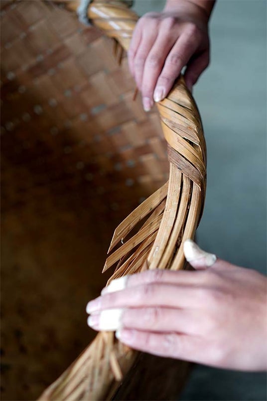 竹製品の修理を通じて持続可能な社会を目指し、熟練職人から若手職人への伝統技術継承に取り組んでいます。その取り組みの中で、京都のお茶農家から預かった傷んだ特大茶籠を竹虎の職人が修理させていただきました。