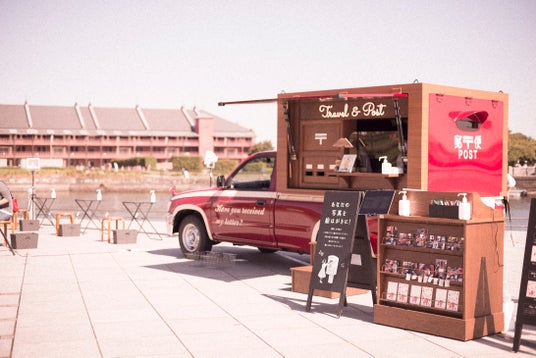 日本にたった1台しかないポストカーは、日本中の絵はがきにしたくなるような風景、瞬間、風物詩を巡る、移動する郵便局です。3種類の投函口がある特別なポストのほか、その場で手紙を書いて、すぐに出すためのツールや機能、サービスを備えています。