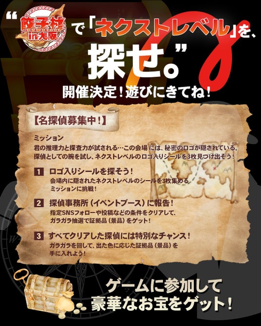 探偵としての腕が試される宝探しゲーム「ネクストレベルを、探せ。」開催決定!