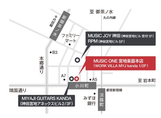 また、オープンを記念して、神田・御茶ノ水エリアの4店舗合同キャンペーンも開催。「MUSIC ONE」、「MIYAJI GUITARS KANDA」、「RPM」、「MUSIC JOY神田」の4店舗において、スタンプラリーや割引セール、ぬいぐるみのプレゼントといった3つの特別なキャンペーンを同時開催します。