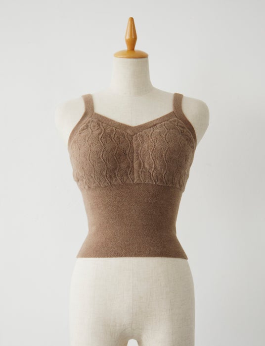 保温性素材を使用した温活系ニットランジェリーブランド。デザインは1930~1950年代欧米のヴィンテージランジェリーからインスピレーションを受けた透かし編みが特徴。