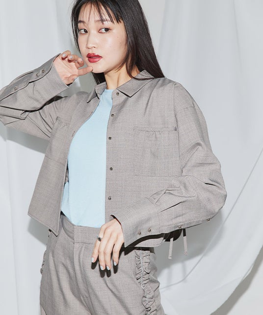 【ECLAM】サイドドロストクロップドシャツ