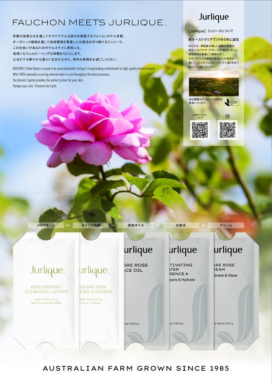 <ジュリーク>は1985年からオーストラリアのオーガニック認証自社農園で、月や太陽、宇宙の歴に沿って植物を栽培・収穫し、パワフルな植物の力を最大限商品に取り入れてきました。香りにおいてもハーブや花々のフレッシュな香りの中に、穏やかさや奥深さのある自然の香りが特徴のオーガニックコスメブランドです。<楽 水山>は、生命の息吹を宿す尻別川の地で、この土地で育まれた旬の食材と、自家源泉かけ流しの客室から眺望できる羊蹄山を楽しめるニセコの宿です。