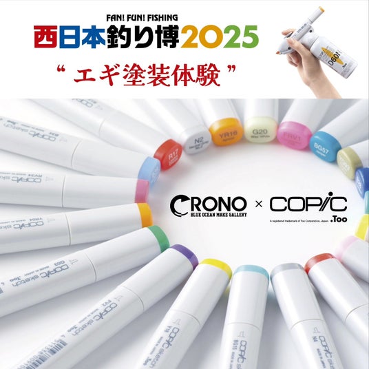 画材ブランド「コピック」を取り扱う株式会社トゥーマーカープロダクツ(本社:東京都目黒区、代表取締役社長:石井 剛太)は、2025年3月15日(土)、16日(日)に開催されるフィッシングショー「西日本釣り博2025」にて、釣り具メーカーの株式会社クロノが出店する「CRONO(クロノ)」ブースでコピックの塗装体験会を実施いたします。