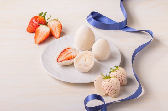 大きな果実、濃い赤色、しっかりとした甘みが特徴の愛知の「愛きらり」をはじめとした、糖度の高い真っ赤ないちごと、香り高くフルーティな味が特徴の佐賀の「白い宝石」をはじめとした、真っ白ないちごがセットになった「紅白いちご大福」