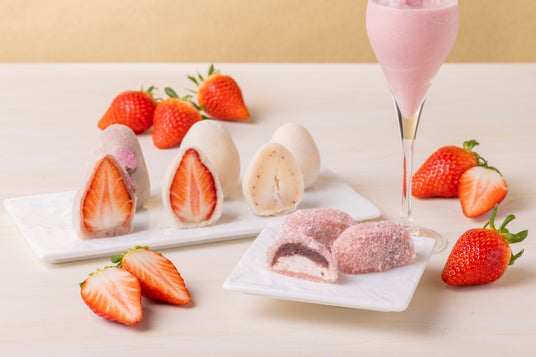 公式オンラインストアでは、桜いちご大福1個、紅白いちご大福1セット、氷餅のいちごクリームチーズ1個の4種のスイーツがセットになった「いちごフェアセット」を期間限定で販売します。