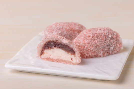酸味をきかせた「いちごの甘露煮」をクリームチーズに混ぜ、こだわりの粒あんと共に求肥で包みました。仕上げに、求肥にいちごのフリーズドライパウダーをかけており、かみしめる度にいちごの香りが広がります