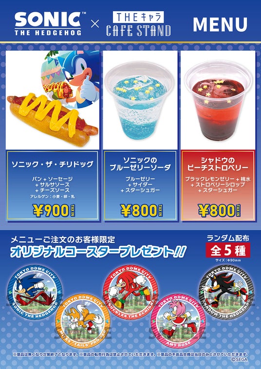 コラボタイトル:「SONIC THE HEDGEHOG」×THEキャラ CAFE STAND 東京ドームシティ店