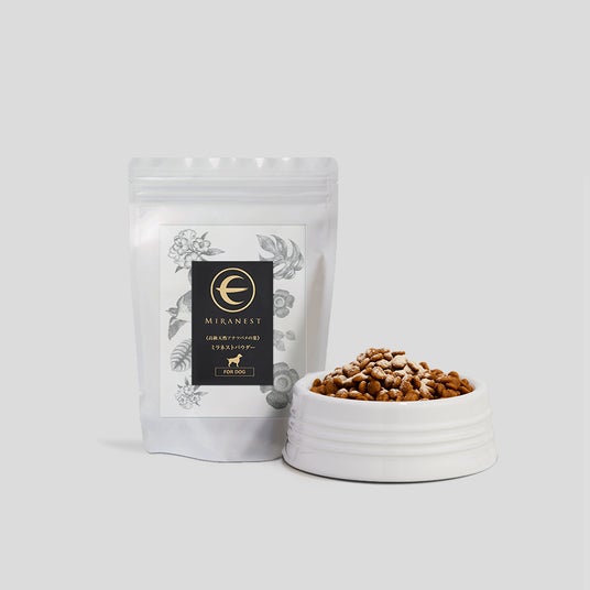 ミラネストパウダーFOR DOG天然アナツバメの巣を高濃度抽出しパウダーにした、ミラネストパウダー[FOR DOG]。食べムラや食欲不振などの心配がある方でも、チキン風味で食べ続けられるように仕上げています。