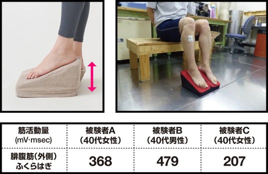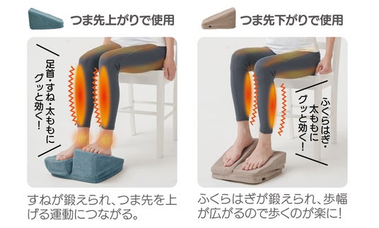 2.つま先下がりで使用:かかとを踏み込むことでふくらはぎが鍛えられ、歩幅が広がり、歩行が楽に!