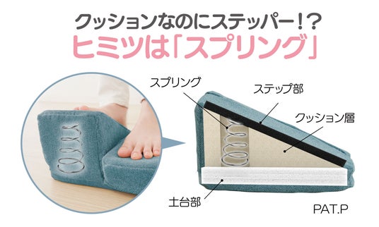 商品に内蔵されたスプリングの反発力が脚の筋肉を刺激し、短時間で効率よくエクササイズできます。