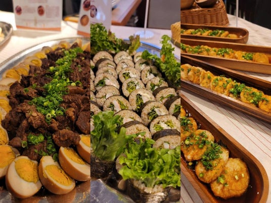 来場者からは、台湾台東の特色ある食材を活かした革新的な料理に高い評価が寄せられました。(写真左から:紅烏龍茶で煮込んだ宮崎牛すじ、宮崎名物レタス巻きの小米(粟)ソース添え、サクサクに揚げた小米(粟)の煮込み団子)