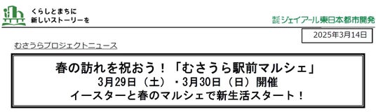 春の訪れを祝おう!「むさうら駅前マルシェ」3月29日(土)・3月30日(日)開催