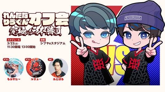 株式会社Reignite Entertainment(本社:東京都目黒区)が運営するグローバルeスポーツチーム「REIGNITE」は、3月22日(土)にファンミーティングイベント『れんたな & りうくんオフ会ー究極の3本勝負ー』を開催いたします。