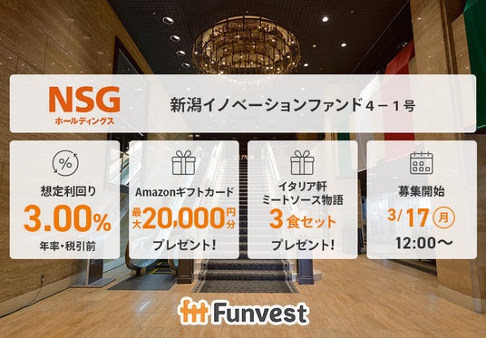 貸付型クラウドファンディング「Funvest」3/17より新ファンド「NSGホールディングス 新潟イノベーションファンド4-1号」の募集開始
