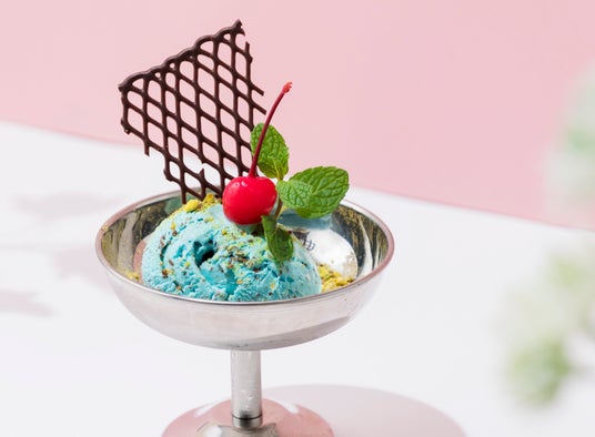 爽やかなチョコミントアイスにチェリーを添えた、甘さと爽快感のバランスが絶妙なデザート。