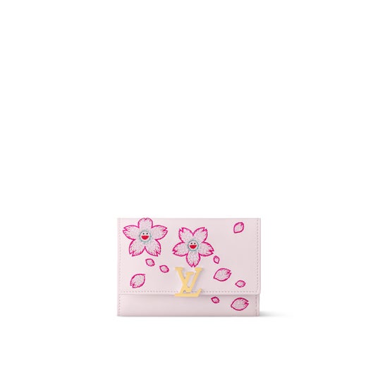 陽気なコードでアップデートした「LV × TM ポルトフォイユ・カプシーヌ コンパクト」。柔らかなピンクのラムレザーを使用し、世界的に著名なこの日本人アーティストならではの遊び心溢れるスタイルで表現した爽やかなチェリーブロッサム・モチーフの刺繍を引き立てました。スナップボタンの留め具にはゴールドカラーのLV イニシャルをあしらい、メゾンならではのシックな印象をプラス。内装にはカードや紙幣、コインを整理できる複数のスロットとポケットを備えています。