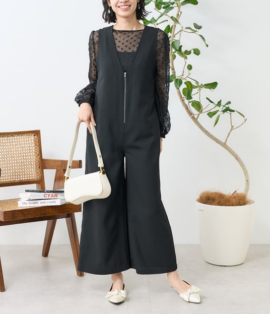 Vネックにノースリーブデザインが大人っぽくオケージョンとしても着用可能で、フロントジップで着脱が楽なのも嬉しいポイント。
