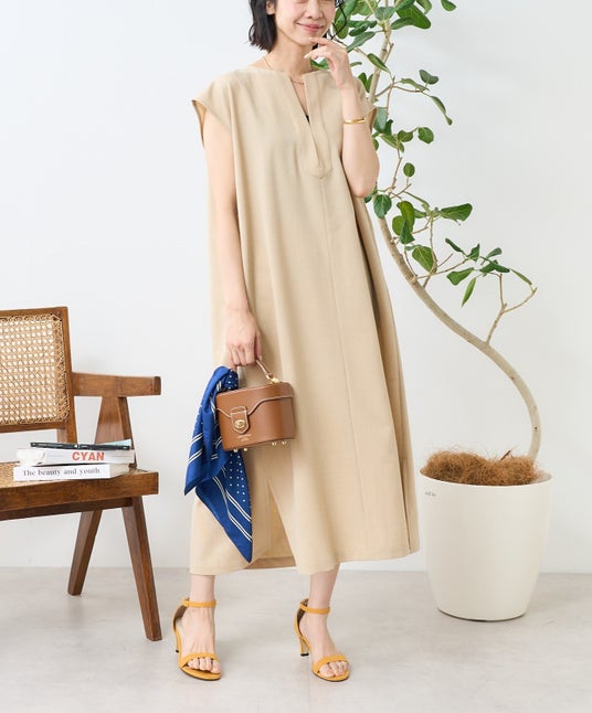 ITEM05 リネンタッチ スキッパーワンピース ¥10,230(tax in)