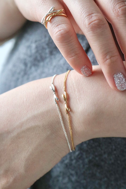 ブレスレットはキヘイチェーンを使用しているので、甘い印象になり過ぎずカジュアルな雰囲気にも相性抜群!側面から見た時の立体感は特にこだわっています。