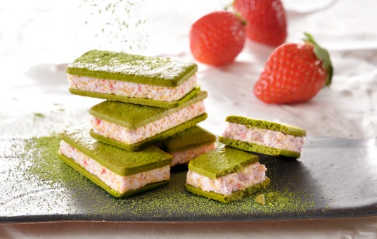 ■チョベリッ茶チョコ・いちご・抹茶をあわせて仕上げたサンドクッキー。 宇治抹茶といちごの味わいを存分にお楽しみいただける焼菓子です。