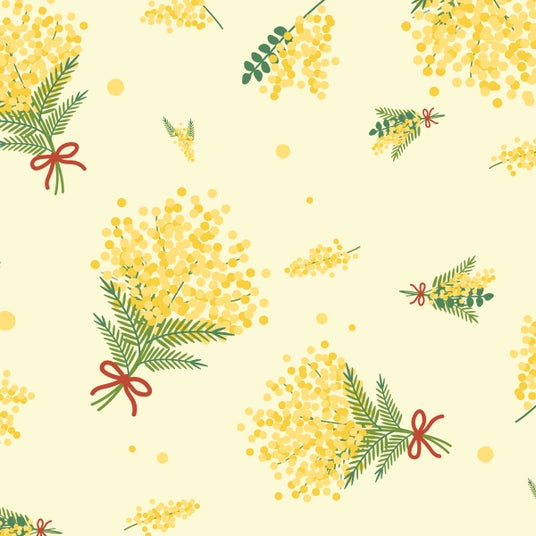 春限定包装紙春らしさあふれるミモザの花束デザイン。