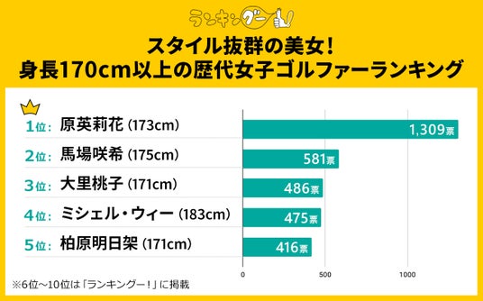 ランキングー!では身長170cm以上の歴代女子ゴルファーをピックアップし、ランキングを調査。全年代の男女(性別回答しないを含む)6,541名にアンケートを行い、TOP10を決定しました。ここではTOP5をご紹介します。