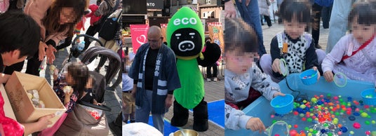 TBSエコブーも参加。スーパーボールすくい、お菓子掴み取りなどで大盛り上がり
