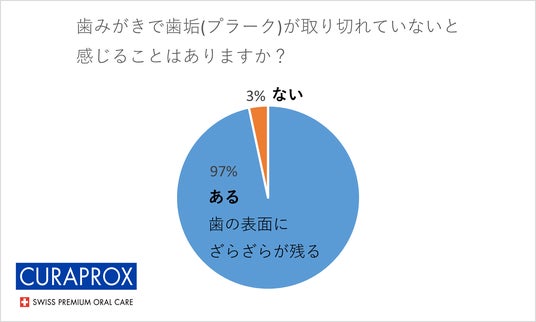 95%以上の女性が毎日2回以上歯みがきをしていても、97パーセントの女性が「歯垢(プラーク)を取り切れていない、歯の表面にザラザラが残る」と感じているようです。