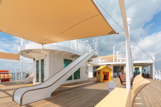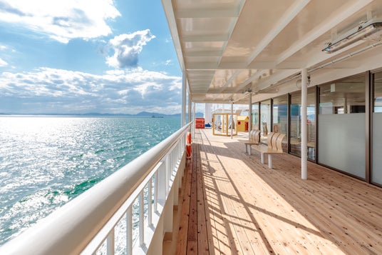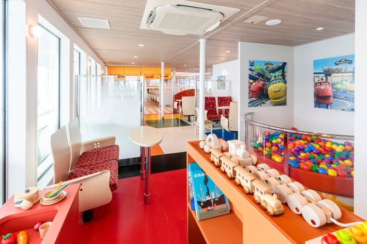 船のコンセプトは「海を走る遊園地」。優雅で上質なインテリアに加え、キッズスペースやブランコなどの遊具、さらに船上を走るミニトレインの体験乗車も実施します。